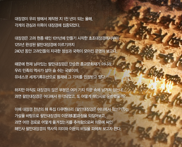 창사특집 <팔만대장경은 어디서 왔는가?> 2011. 12. 30일 (금) 밤 10:00